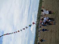 1回目は上手くできませんでしたが、最後は子どもたちだけで揚げられるようになりました。凧を支える人、声をかける人、ひもを引っ張る人などそれぞれの役割を果たしてがんばっていました。