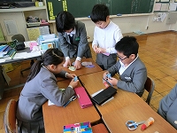 5年生の図工科では、初めて電動糸のこを使います。自分で書いた線に沿って木の板を切り、パズルを作ります。危険も伴うものなのですが、今年の5年生は、大胆に切り進む子が多いようです。作品が完成するのが楽しみです。