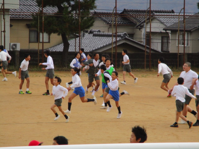 童が参加しました。運動場いっぱいを思いきり走る子ども達。警察役として、途