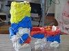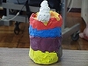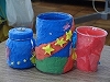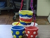 今回の図工は、ハッピー小物入れ作り。家から持ってきた材料に、粘土や飾りをつけて「ハッピー」をどう表現するのかを考えました。