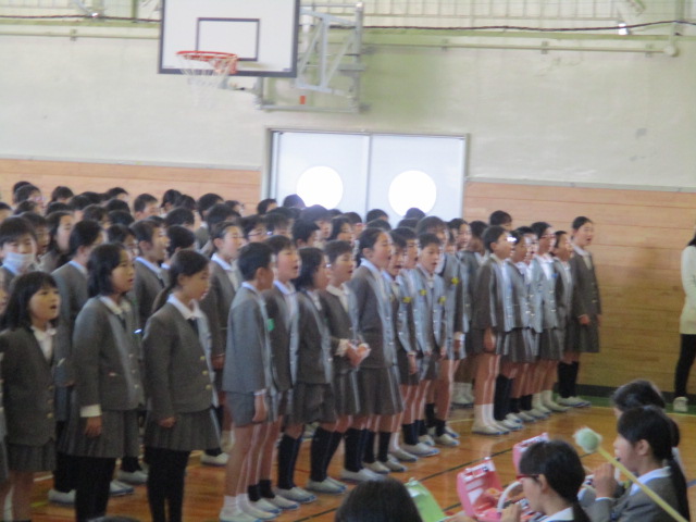 今月の歌は「大切なもの」です。今月も素敵な歌声が体育館中に響き渡りました。本当に大根