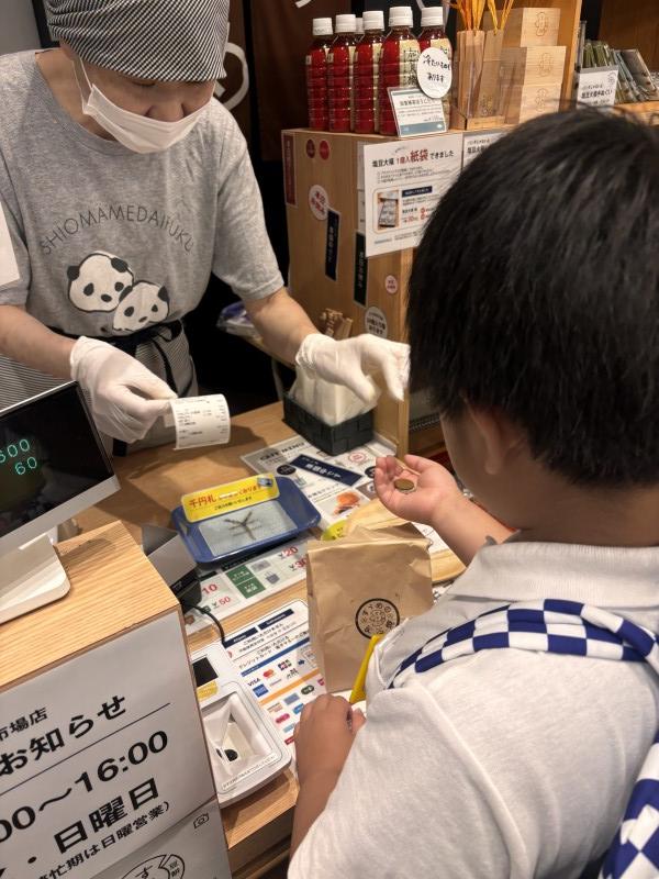 児童は楽しみにしていた当日を迎え、計画していた物を買えて、「楽しかった!」「おうちかえって早く見せたい!」など自分で買い物が出来た喜びを言葉にしていました。学校に帰るまで、終始えがおが絶えない学習になりました。