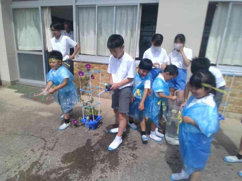 夏ならではの水で遊べるおもちゃをつくり、6年生をご招待しました。