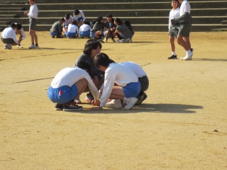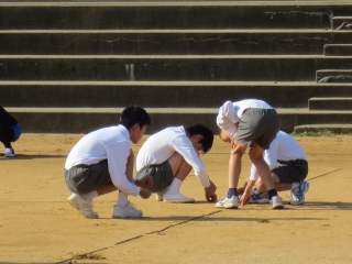 11月19日(金)の昼休みに、美化委員会主催のキラキラ活動『グラウンド感謝祭』が行われました。日頃、楽しく活動させてもらっている運動場に感謝の気持ちを込めて、石拾いをしようという企画です。予定していた日が雨で順延になり、今日やっと実施することができました。