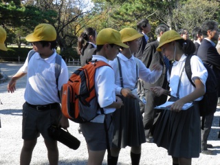 昼食を金沢城祉公園でとった後、兼六園に向かいました。兼六園では4~5人のグループに分かれ、クイズラリーを楽しみながら、秋の兼六園を散策してきました。