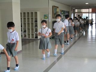 今日は、1年生の体育の様子をお伝えします。学校が再開して1か月が過ぎました。1年生はすっかり成長し、体育の時間に体育館に移動する姿もとても立派になっています。校長室の前を通る時は、黙礼をして笑顔を送ってくれます。