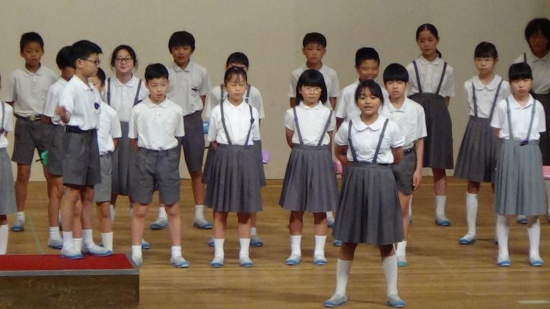 4年生は、先週行われた器械運動交歓会での演技を、5年生は、12日に行われる内灘町小学校音楽会での演奏や合唱を披露しました。披露した後には、他学年からの感想もあり、披露した側にも見ていた側にもとてもよい時間になりました。