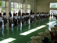 今日は1年生が校歌を年長さんに披露しました。この1学期で、こんなに上手に歌えるようになったのだと感心しました。「友達になるために」という歌も手話を交えて歌いました。保育園の子どもたちはどんな思いで聞いていたのでしょう。とても真剣な表情でした。