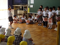 <じゃんけん列車で仲良し>        <「大きなかぶ」の音読劇>