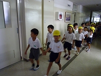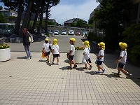 <先輩の案内で学校探検>         <歩いて保育園まで>