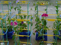 5月から育てている朝顔は、2週間ほど前から花が咲き始めました。夏休みには、家庭に持ち帰りお世話をすることになっています。9月には、種の観察をしたり、朝顔のつるでリースを作ったりするようです。しっかりとしたリースができるようにお世話をよろしくお願いします。