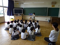 今日は1年2組、3年2組、5年2組のお話会でした。火曜日とはちがうがらがらどんのメンバーの方の読み聞かせです。