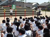 今は、お昼休みです。さっきまで一生懸命に掃除をしていた子どもたちが、暑い中、運動場でサッカーをしたり、鉄棒をしたりしています。2階の教室からはよさこいソーランを練習しているのでしょうか?勇ましいかけ声が聞こえます。
