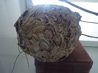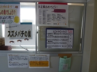 理科室前には大きなスズメバチの巣を展示しています。PTA会長さんからいただいたものです。理科担当の先生がスズメバチクイズを作って掲示したところ、たくさんの子どもたちが応募してくれました。理科好きな子がたくさんいるんだなと感心しました。