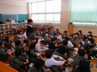 企画委員会が中心となり、大根布小学校をよりよくしていくために、委員長や各クラスの学級代表が会に出て話し合います。