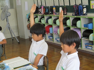今日の学習は、「あらすじ」を捉えた後の、1・2場面のスイミーの気持ちを考えるところでした。自分の考えをノートに書いた後の発表では、子ども達同士で発表をつなげることができていました。「〇ページを見て下さい」「~と書いてありますね」「つまり~です」という言い方で話したり、手を挙げるときも「ほかに」「自分の言葉で」「つまりまとめると」のように自分の立場をはっきりさせて手を挙げていました。2年生でこれができるというのは、すごいことです。毎日の積み重ねで、もっともっと上手に話せるようになりますね。1・2年生でこの学び方ができれば、3年生からの勉強もみんなで協働的に積み上げることができます。