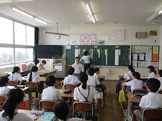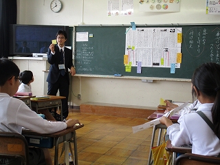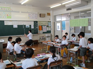 今日は、4年1組の国語の授業を参観しました。担任は、4年目の白澤先生です。研究授業だったので、先生方も参観しこれからの国語の授業について互いに学び合いました。