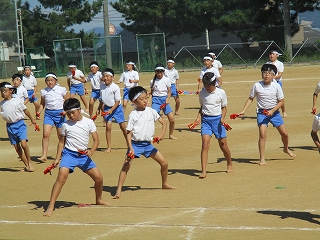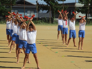 連日、暑い日が続いていますが、子ども達は14日(土)の本番に向けて運動会練習に取り組んでいます。中学年は、今年も「よさこい」に挑戦しています。今年は、これまでに比べて少し人数が少ないので、できるだけ運動場を広く大きく使おうと工夫し、間奏で全速力で走る子ども達の姿が見られました。本番の「大根布ソーラン2019」を、どうぞお楽しみに!