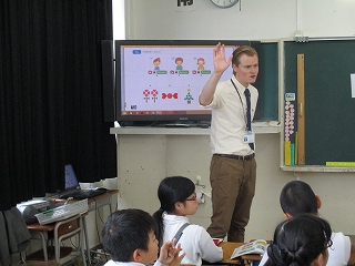 今日は、3年1組の英語活動の授業を参観しました。3年生は、週に1回の英語活動を町のALTのローワン先生といっしょに行っています。