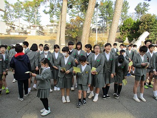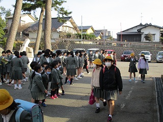 毎朝、登校したらすぐにランドセルを教室に置き、次々と玄関前に走り出て挨拶に立つ「自主挨拶運動」に参加する5・6年生が大勢います。8時前には、何十人もの挨拶の人垣ができています。バスが到着すると、降車する場所の近くに移動して、降りてくる人たちを迎え、挨拶を交わしています。私が、大根布小学校を大好きな理由の一つである素敵な光景です。6年生は、今朝が最後の挨拶運動でした。今日は、私から6年生に、今まで頑張ってくれたお礼を言いました。近くにいた5年生のK君に「後は、5年生が頑張ってくれるよね。」と問いかけると、「はい!」という力強い応えが返ってきました。こんな後輩達が、明日巣立つ6年生の後を継ぎ、大根布小の素晴らしい伝統をつないでいってくれると思います。