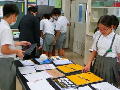 子どもたちが夏休みに頑張って制作した様々な作品が、図工室と理科室に並んでいます。