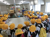 大きなまな板のまわりで、飼育員さんのお話を聞きます。
