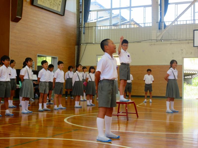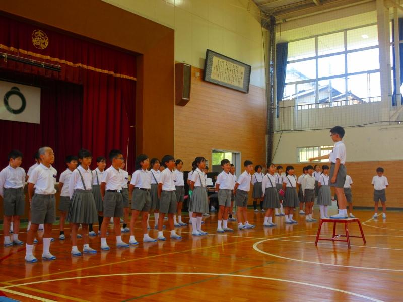 4年生は、先週行われた器械運動交歓会での演技を、5年生は、12日に行われる内灘町小学校音楽会での演奏や合唱を披露しました。披露した後には、他学年からの感想もあり、披露した側にも見ていた側にもとてもよい時間になりました。