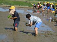 田んぼに足を入れたことのない子ども達がほとんどのためか、最初は、恐る恐る田んぼの中に足を入れていく姿が見られました。どろの感触に戸惑いを感じたのかあちらこちらで悲鳴に似たような声が聞こえてきます。次第に、田植えになれてきた子ども達は、黙々と作業をしていました。実際に体験をしてみることで、機械を使わずに田植えをすることの大変さを感じることが出来たのではないでしょうか。秋の稲刈り体験も今から楽しみです。