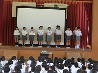 児童集会の中で後期の委員長・副委員長と学級代表の紹介と任命式が行われました。