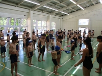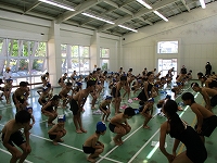 一緒に体操をしてからプールへ移動して、プールでの三つの約束のお話しを聞きました。