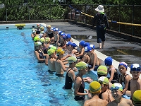 1年生は初めての水泳学習なので、楽しみな気持ち反面、少し緊張している表情の子もいました。