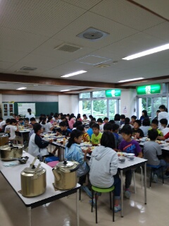 おはようございます。山のひんやりとした朝の空気で目覚めた子どもたち。今から朝ごはんです。大きな事故や怪我もなく、みんな元気です。