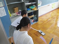 昨日、教室のワックスがけをしました。年3回あるうちの1回目で、今回は6-1が校舎内の全教室のワックスがけをしました。
