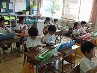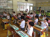 鍵盤ハーモニカを使うのを楽しみにしていた子どもたち。