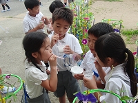 生活科「なつやすみをたのしもう」で、シャボン玉をしました。