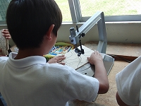 5年生の図工科では、初めて電動糸のこを使います。自分で書いた線に沿って木の板を切り、パズルを作ります。危険も伴うものなのですが、今年の5年生は、大胆に切り進む子が多いようです。作品が完成するのが楽しみです。