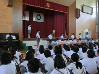 音楽に関わるクイズや、ボディパーカッション、ミニコンサート、どの学年も楽しそうに参加していました。