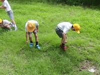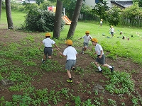 子どもたちは、虫を探したり、遊具で遊んだり、はらっぱで走り回ったりして、