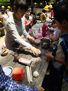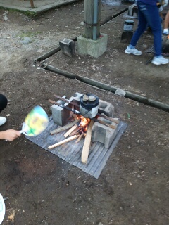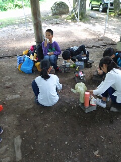 自分たちでお湯を沸かしてお昼ご飯づくりです。