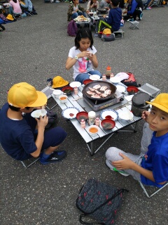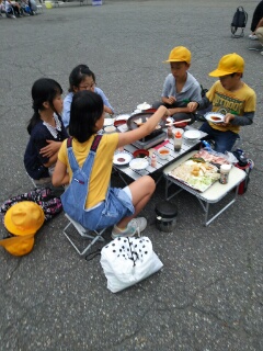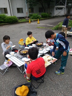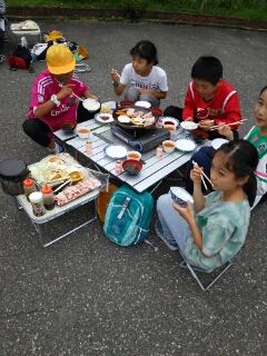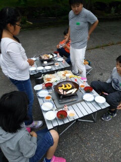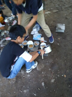 自分たちで炊いたご飯は、味も格別!4杯おかわりした女の子も!しっかり食べて、肝試しに備えましょうね。