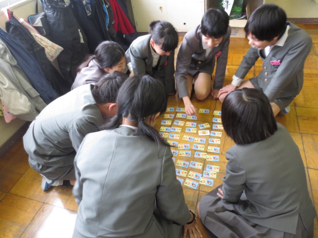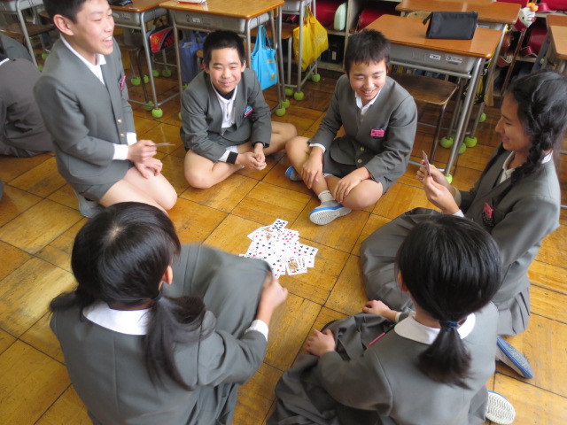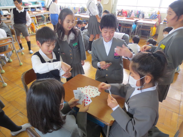 学校に帰ってきてから、3クラス合同でトランプで遊びました。卒業前に、また一つ楽しい