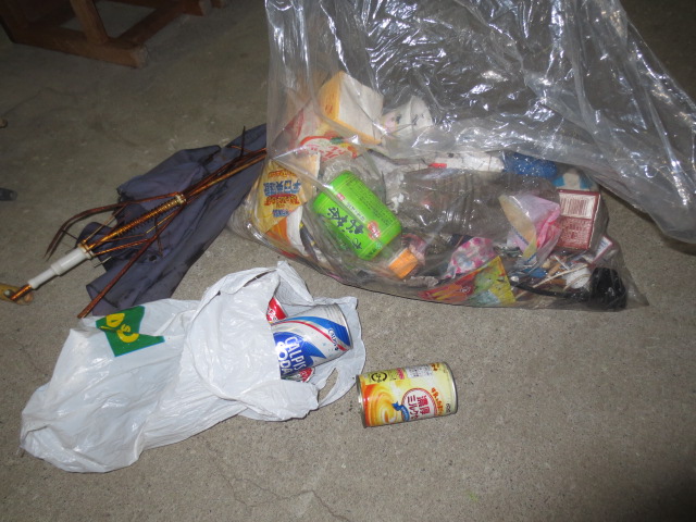 残念な雨。雨宿り中です。 代表の子を中心にゴミ拾い!遊具の下にもゴミがいっぱい。