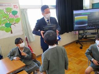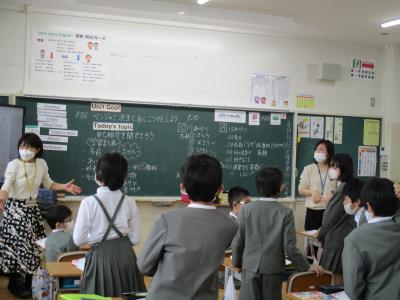 自分が伝えたい言葉が英語でどのように表現していいのか分からないときは、先生がすかさず支援してくれるため、英語でしっかりと発表していました。グローバル化が急速に進む未来に向けて、英語に慣れ親しめる子ども達を育てていきたいと思います。
