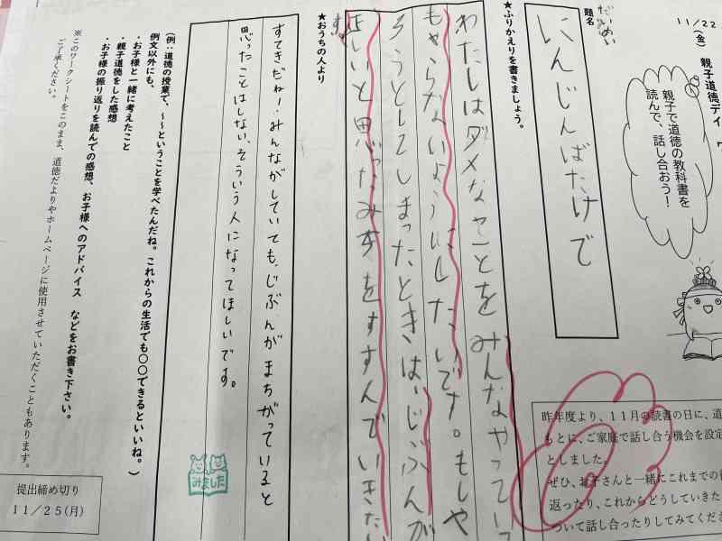 お家の方と話し合い、自分のこれまでの行動をふり返ったり、これからどうしていきたいかを考えることができました。
