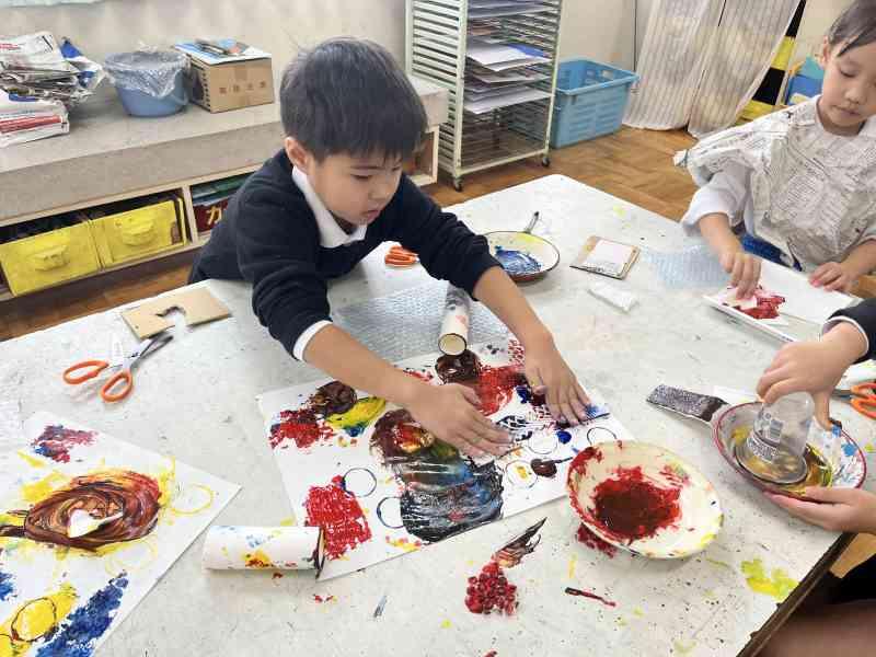 身の回りにあるものから、想像力を膨らませ、形や色、大きさを生かした作品を作ることができました。