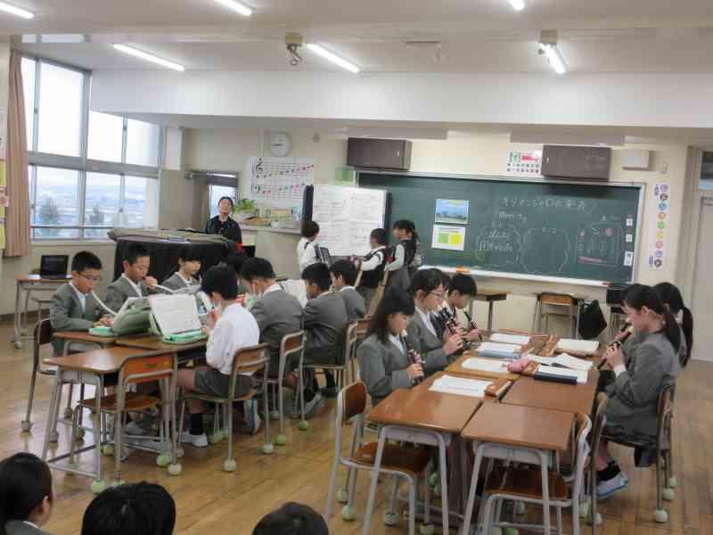 音楽の時間に練習してきた「キリマンジャロ」という曲の合奏をお互いのクラスで見合うことになりました。