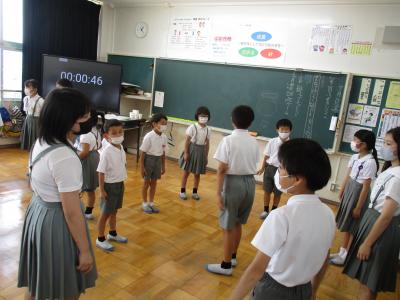 7月15日の昼休みは、1年から6年が縦割りグループごとに分かれてふれ合い遊びの時間を過ごしました。