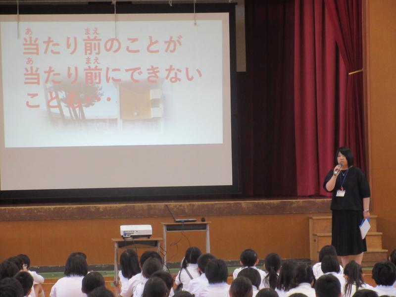校長先生からは、「当たり前のことを当たり前にできるありがたさ」について考え、だからこそ「今、自分のもっている力を発揮し、自分らしくがんばろう」というお話がありました。