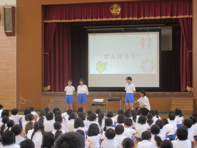 次に、企画委員会から、運動会のスローガン「精一杯力を合わせ、最後まで!!ねぶっ子の力を見せつけろ!!」の発表がありました。