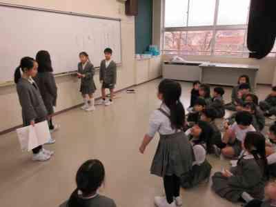 2年 準備開始! 投稿日時 : 01/08 教職員 6年生大感謝祭に向けて、2年生として準備を始めました! 今日は6年生へ「今までありがとう、中学校でもがんばってね、覚えていてね」の気持ちを伝えるためにどんなことをするのか話し合いました。これから詳しく何をするのか子供たち中心に決めていきたいと思っています。 Tweet